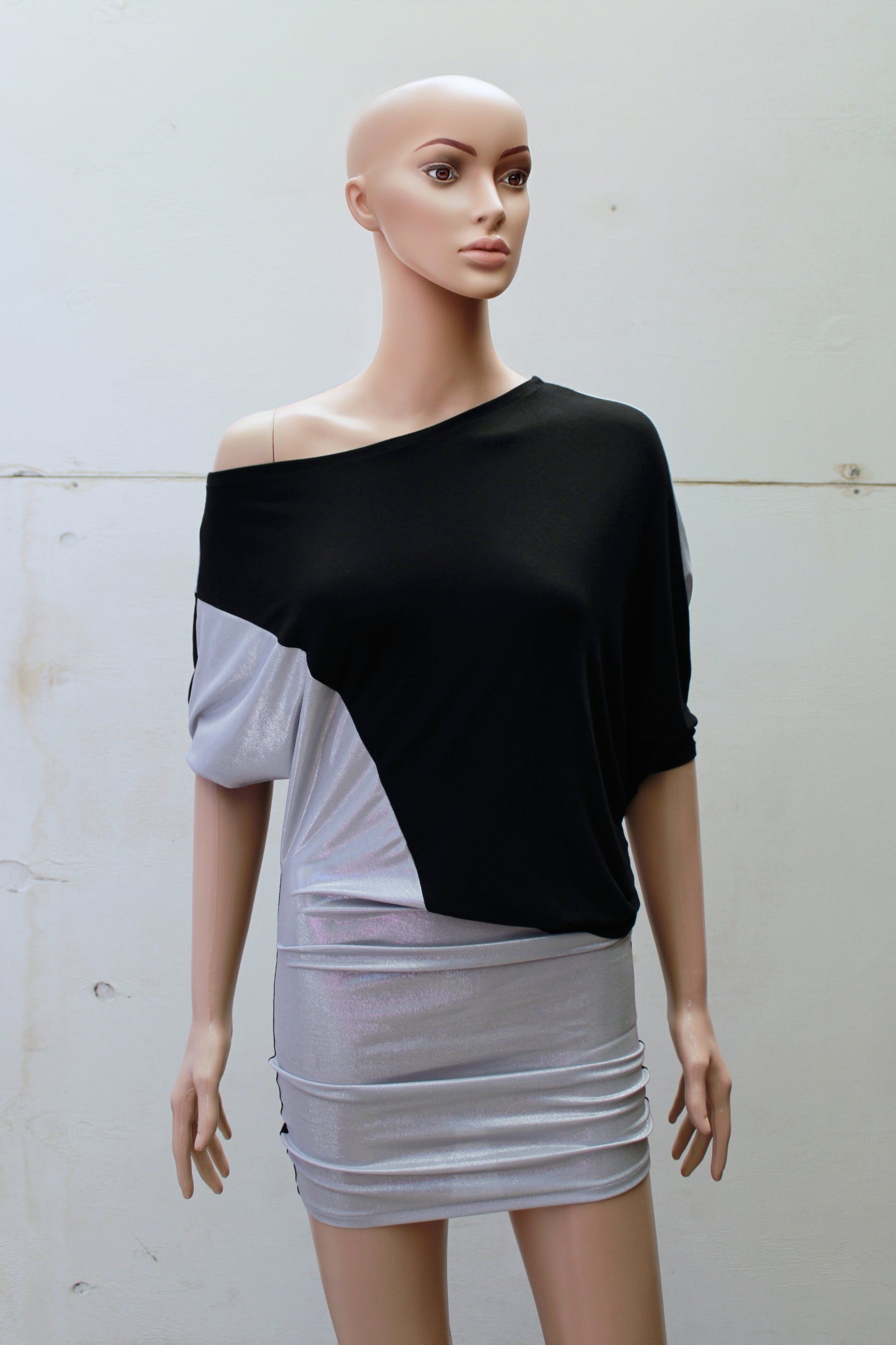 "DOUBLE TROUBLE" ASYMETRIC SilverShine MINIDRESS