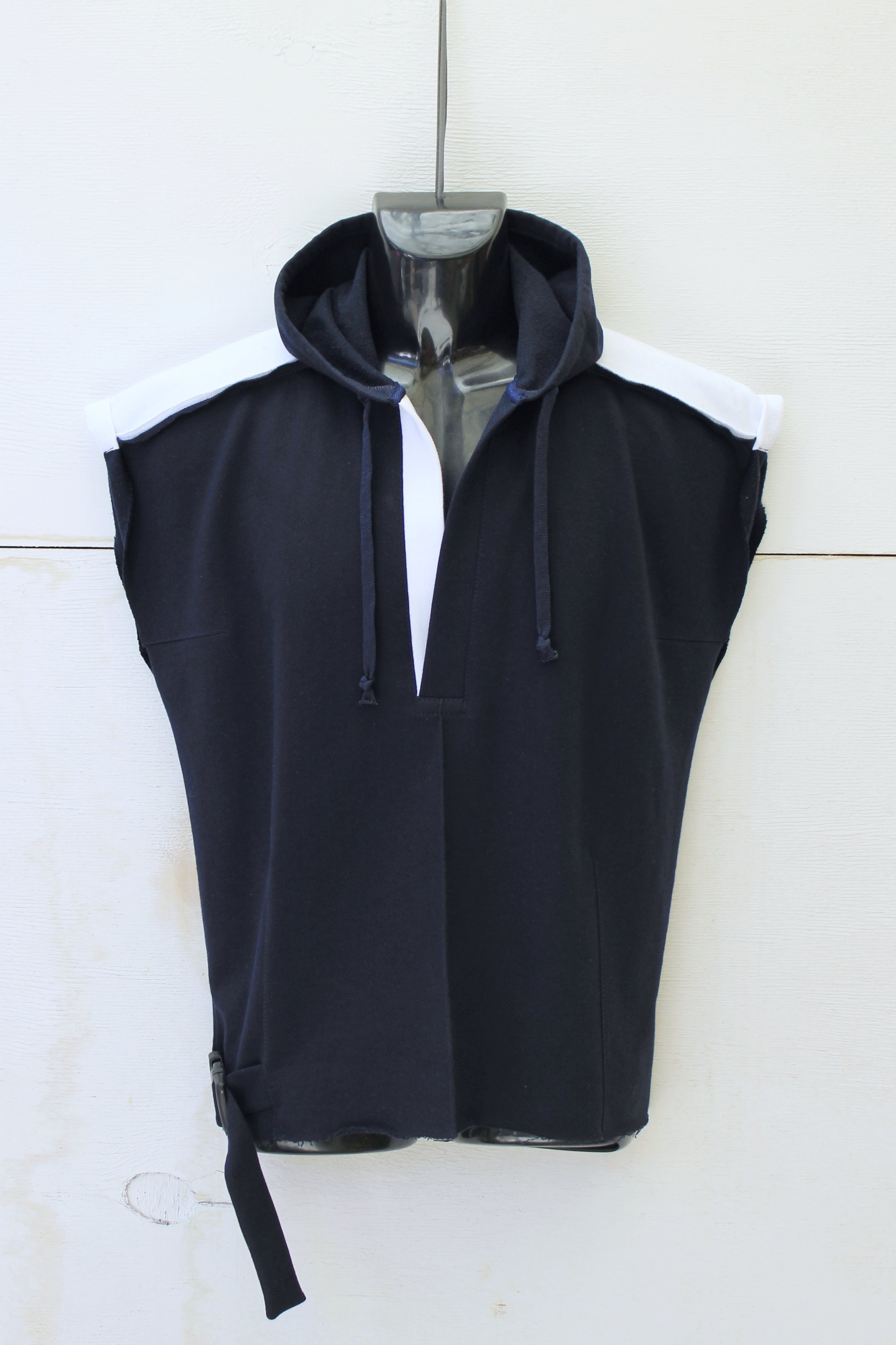 "SLEEVELESS" TUNIC HOODIE ( Navy/White )